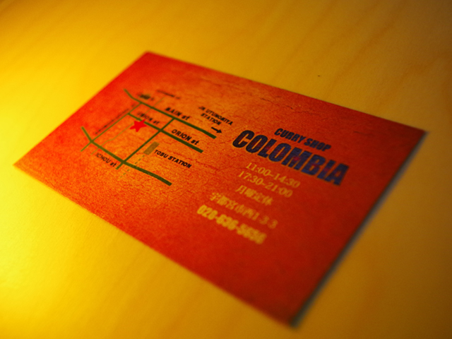 宇都宮の街中、ユニオン通り沿いにあるカレーの店 コロンビア様の名刺を作成させていただきました。